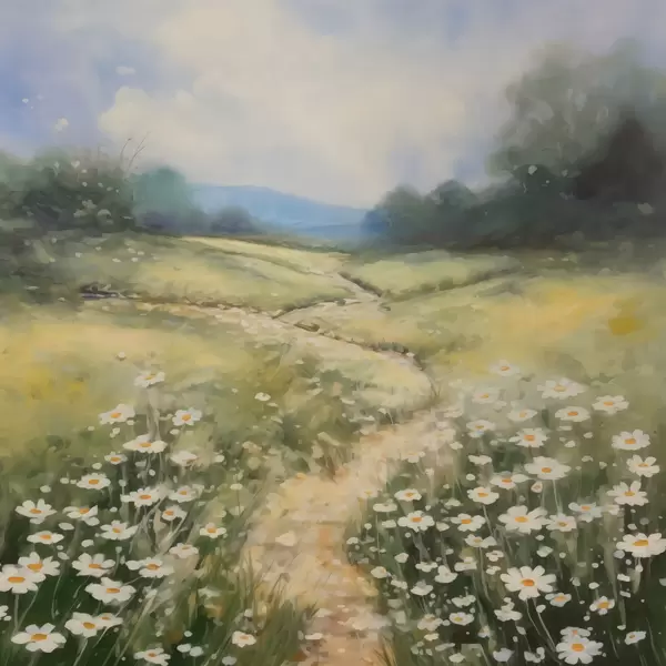Poster Weide met madeliefjes imitatie van schilderij Nr f42134