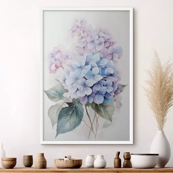 Poster Tak met hortensia bloemen imitatie aquarel f42143