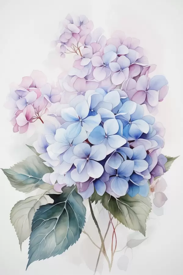 Poster Tak met hortensia bloemen imitatie aquarel Nr f42143