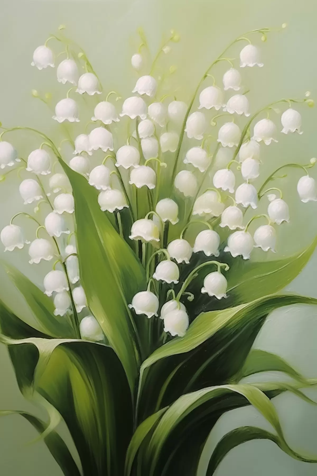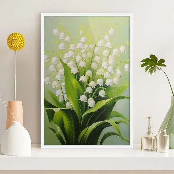 Poster Lelietjes-van-dalen op een delicate groene achtergrond Nr f42160