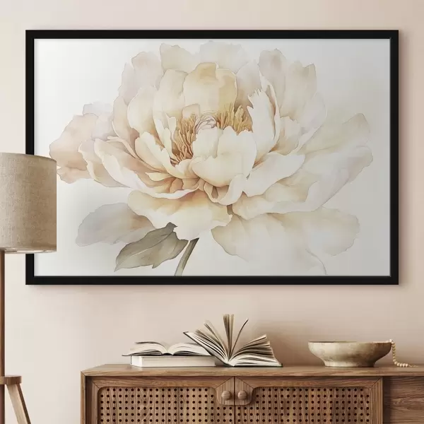 Poster Prachtige pioenroos bloem, zachte romige kleuren, aquarel stijl Nr f42201