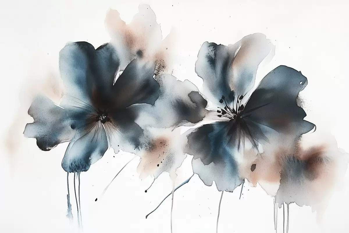 Poster Aquarel stijl bloemen, blauwe kleuren Nr f42208