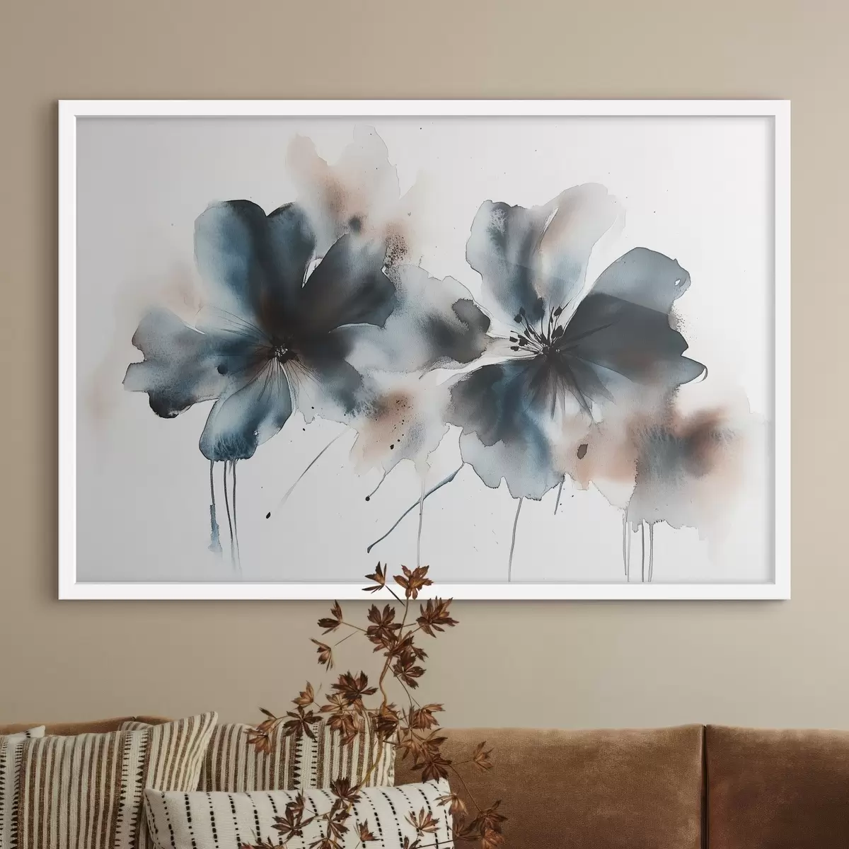 Poster Aquarel stijl bloemen, blauwe kleuren f42208