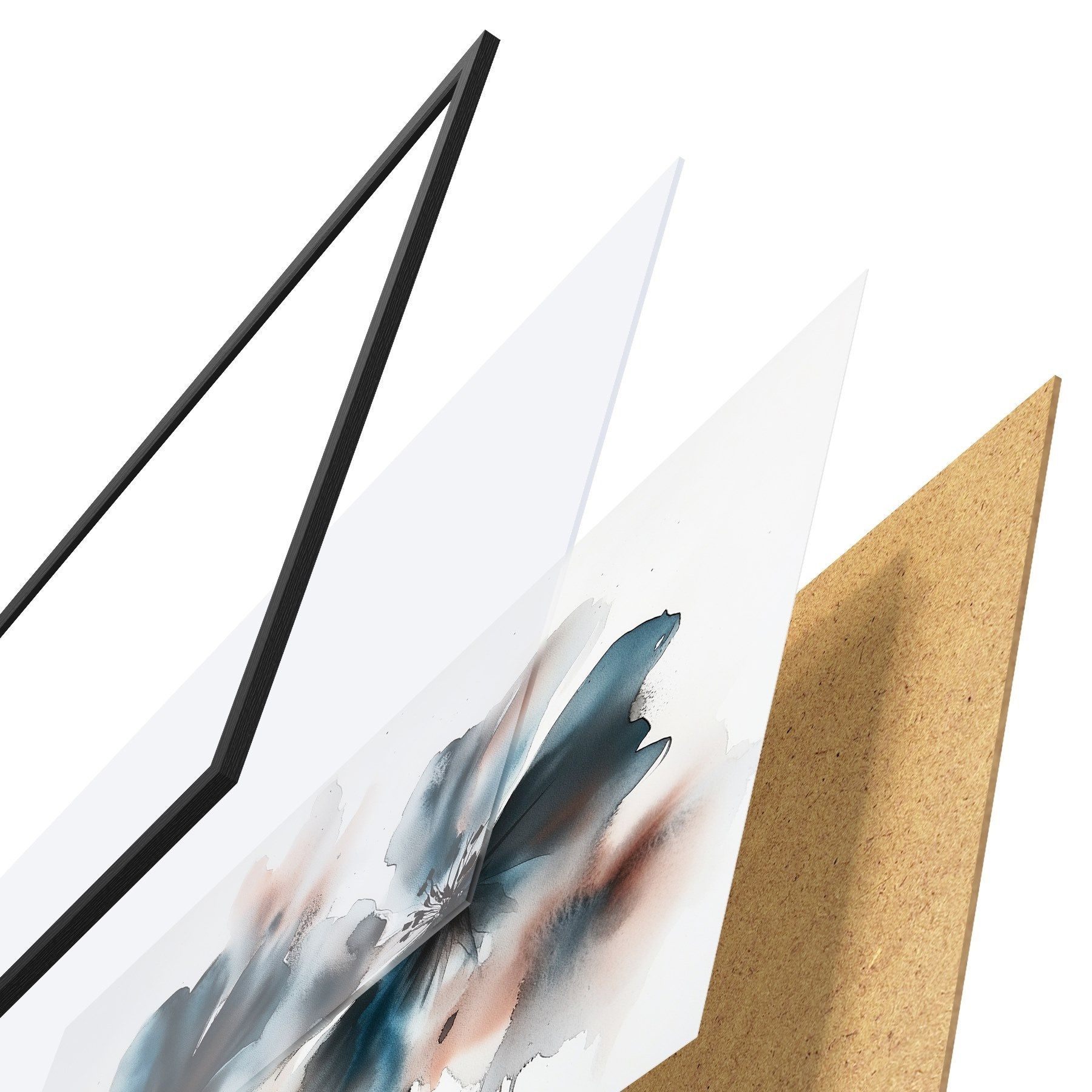 De poster bestaat uit een frame, plexiglas, geprinte afbeelding en spaanplaat achterkant. De poster kan meteen aan de muur worden gehangen dankzij de bevestigingen op de achterkant.