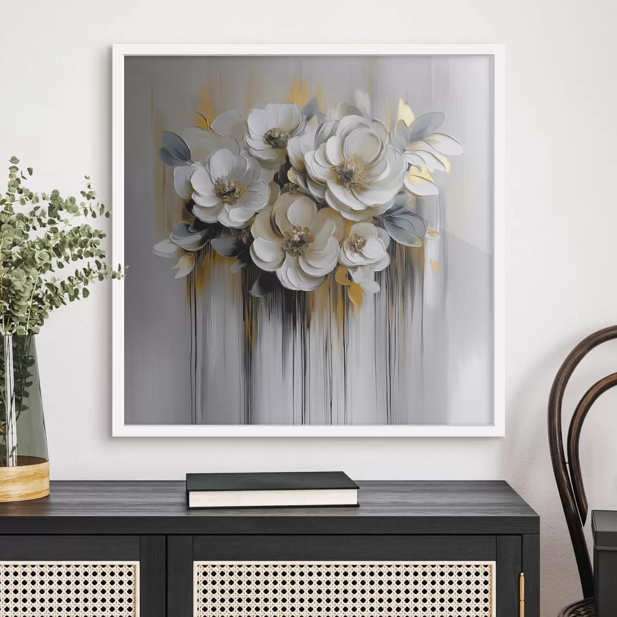 De poster bestaat uit een frame, plexiglas, geprinte afbeelding en spaanplaat achterkant. De poster kan meteen aan de muur worden gehangen dankzij de bevestigingen op de achterkant.