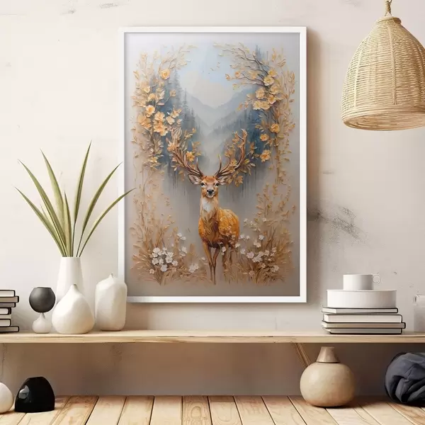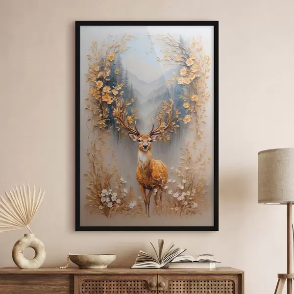Poster Hert met groot gewei op bosachtergrond Nr f42252