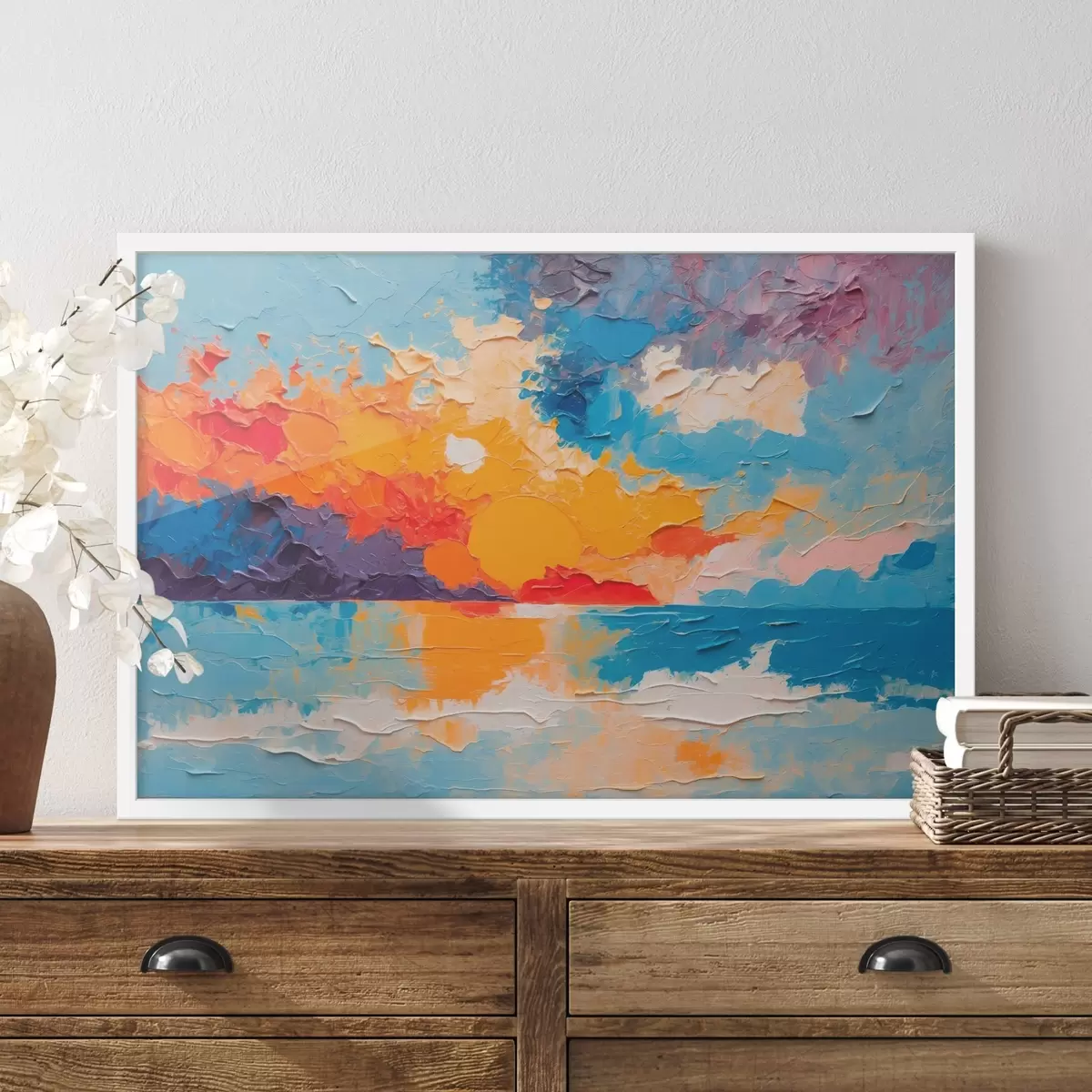 Poster Uitzicht op zee en zon in olieverfstijl Nr f42258
