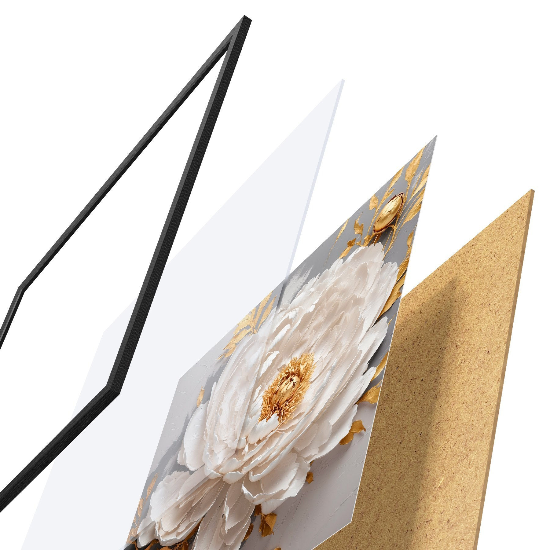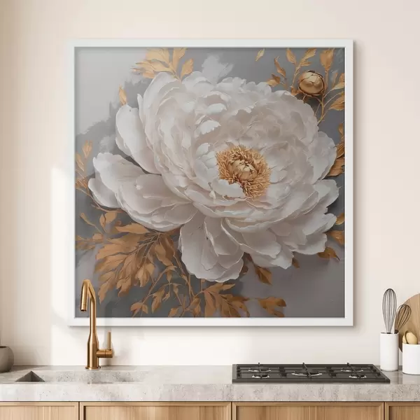 Poster Witte pioen op grijze achtergrond Nr f42260
