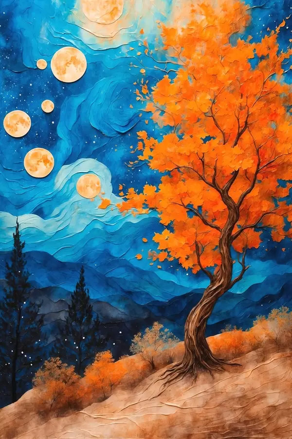Poster Boom die 's nachts op een heuvel groeit Nr f42274