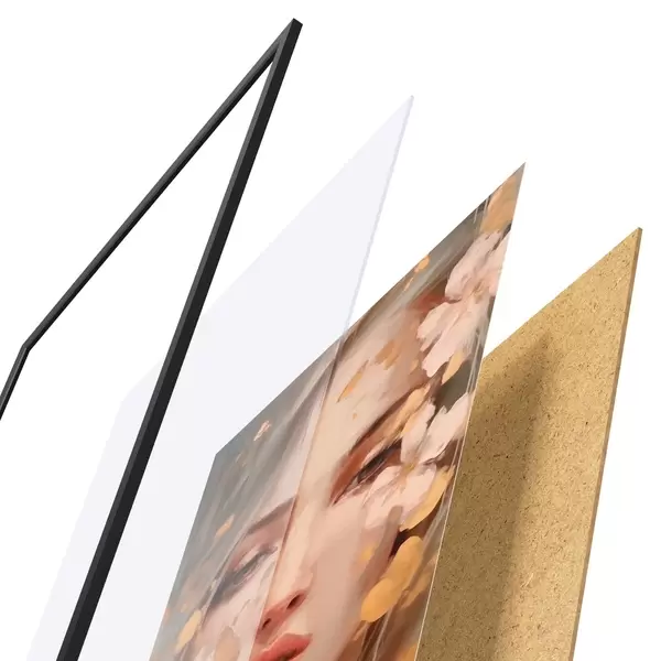 De poster bestaat uit een frame, plexiglas, geprinte afbeelding en spaanplaat achterkant. De poster kan meteen aan de muur worden gehangen dankzij de bevestigingen op de achterkant.