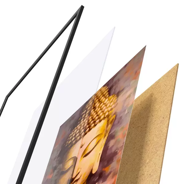 De poster bestaat uit een frame, plexiglas, geprinte afbeelding en spaanplaat achterkant. De poster kan meteen aan de muur worden gehangen dankzij de bevestigingen op de achterkant.
