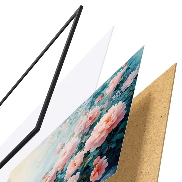 De poster bestaat uit een frame, plexiglas, geprinte afbeelding en spaanplaat achterkant. De poster kan meteen aan de muur worden gehangen dankzij de bevestigingen op de achterkant.