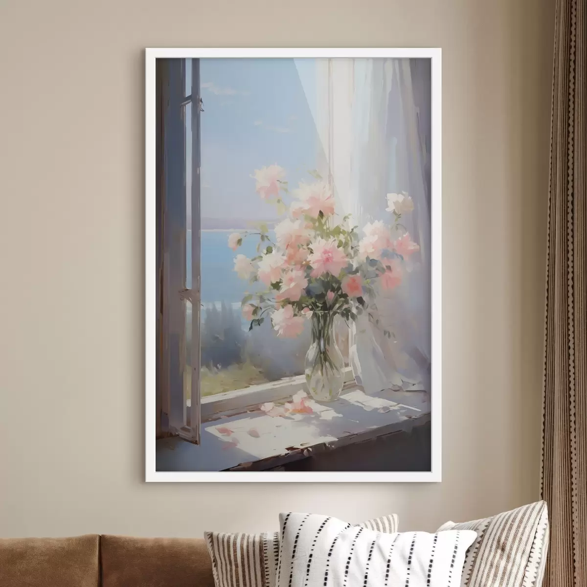 Poster Boeket van delicate bloemen in een glazen vaas imitatie van schilderij Nr f42352