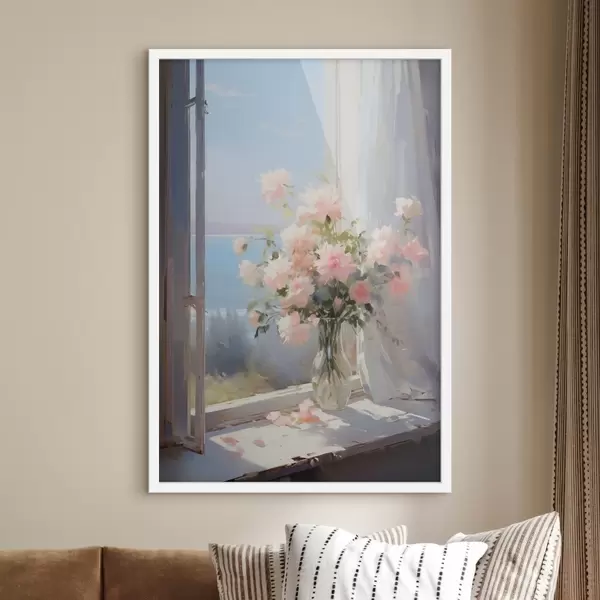 Poster Boeket van delicate bloemen in een glazen vaas imitatie van schilderij f42352