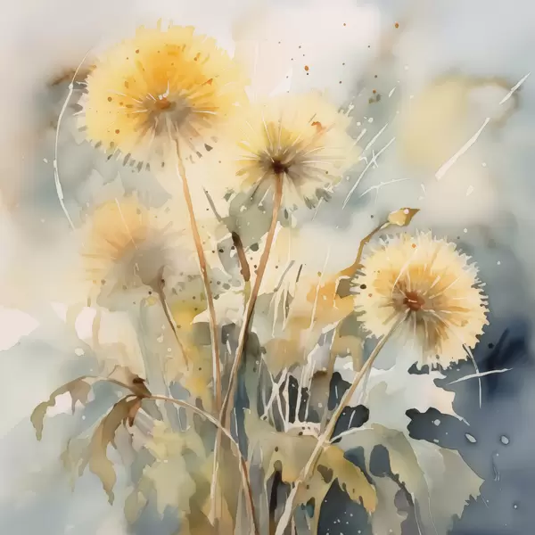 Poster Paardebloemen imitatie van vage aquarel Nr f42369