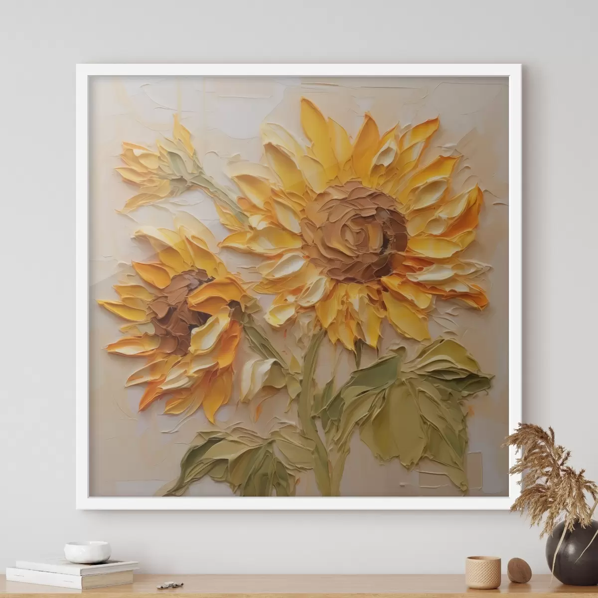 Poster Zonnebloemen imitatie verfstreken Nr f42411