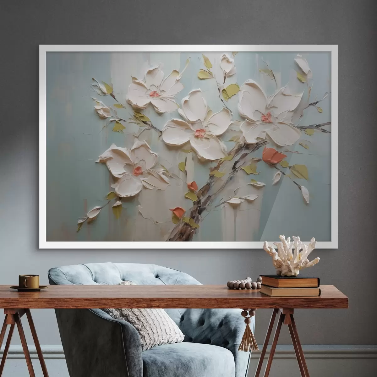 Poster Witte bloemen imitatieverfstreken Nr f42417