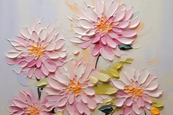 Poster Chrysanten imitatie van verfstreken f42423