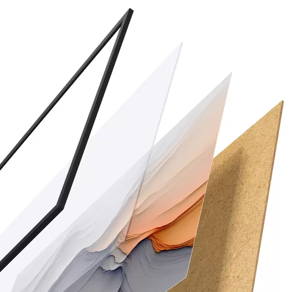 De poster bestaat uit een frame, plexiglas, geprinte afbeelding en spaanplaat achterkant. De poster kan meteen aan de muur worden gehangen dankzij de bevestigingen op de achterkant.