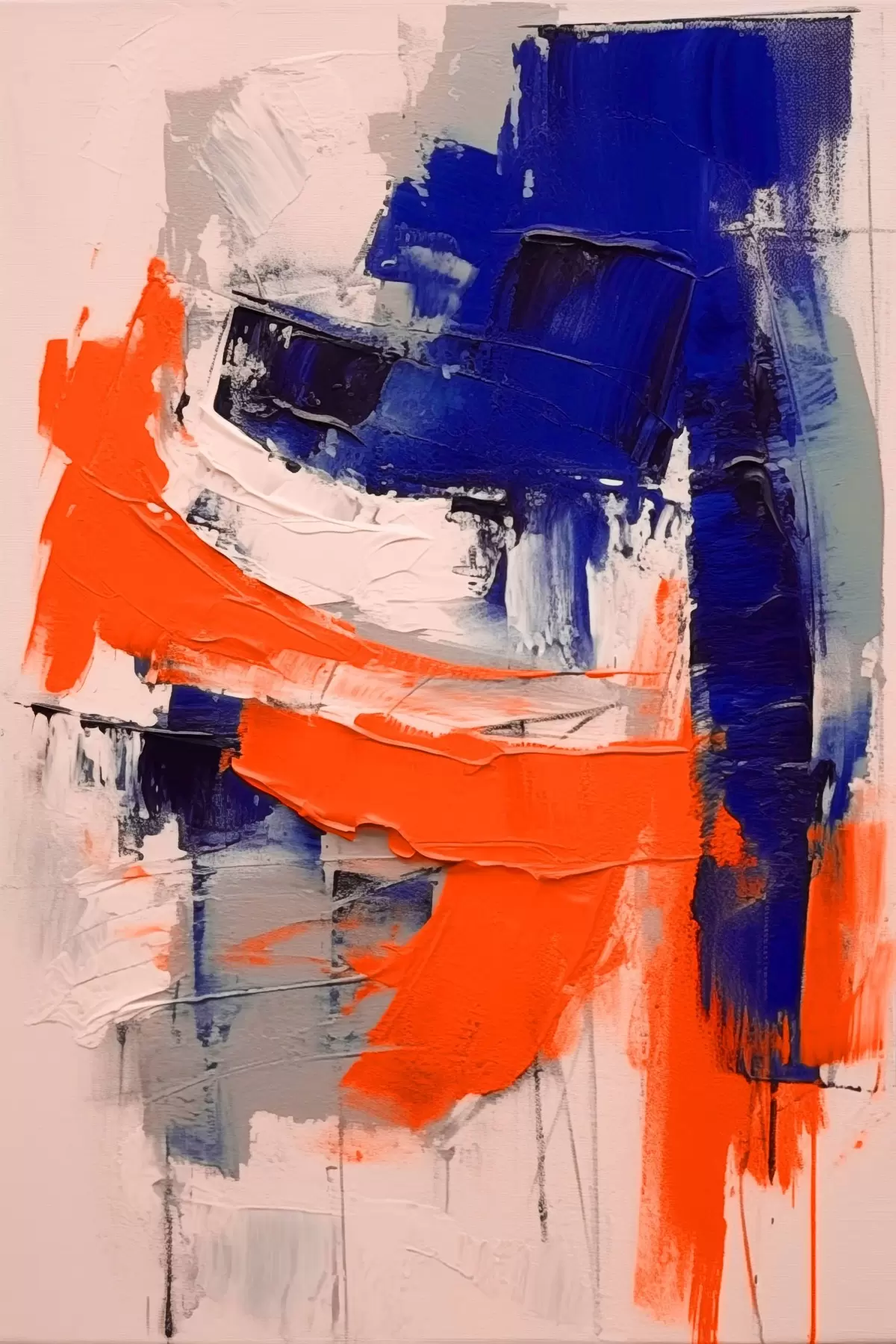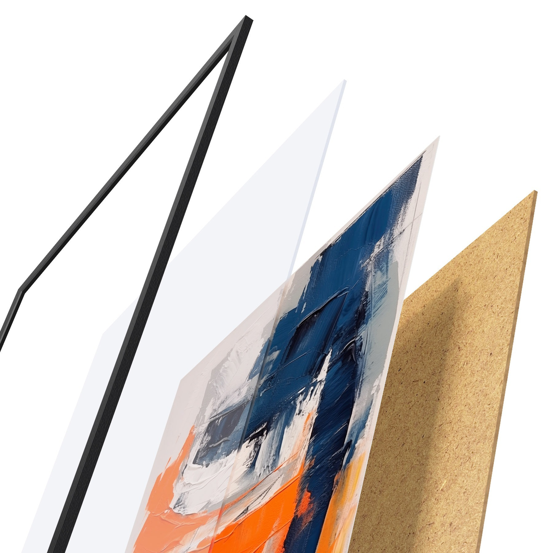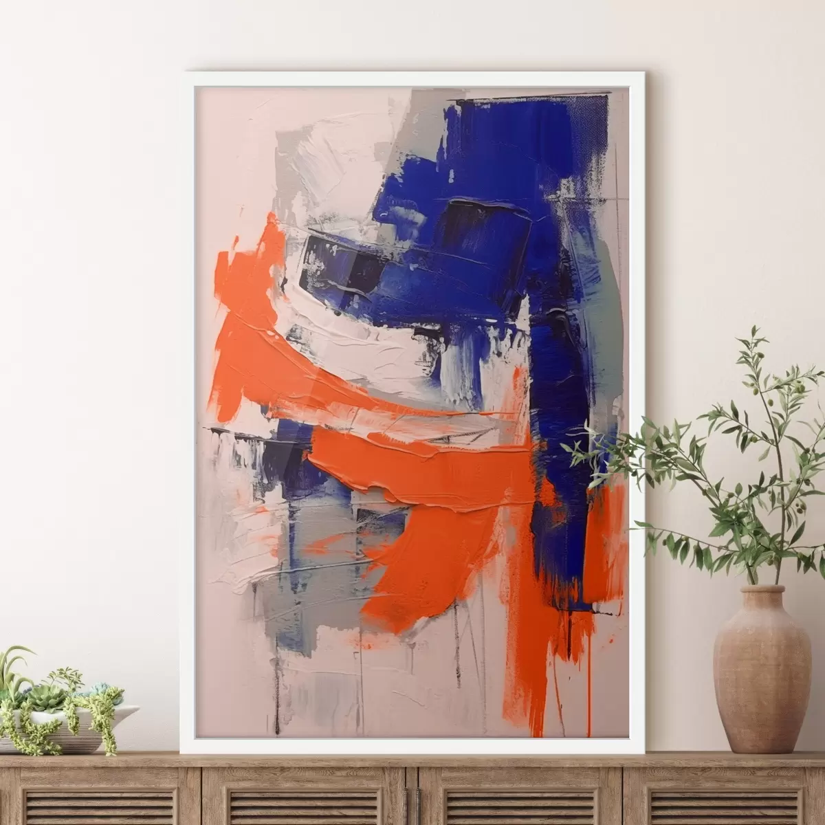 Poster Abstracte compositie met fel oranje en blauwe accenten Nr f42482