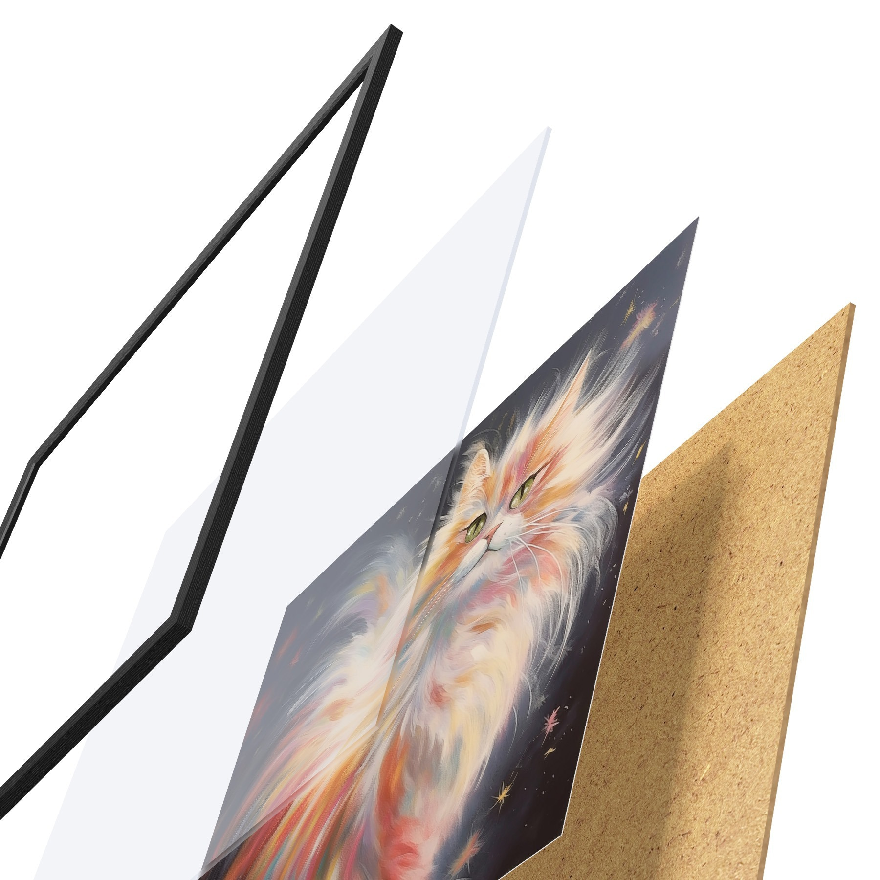 Poster Pluizige kat met kleurrijke vacht op donkere achtergrond f42484