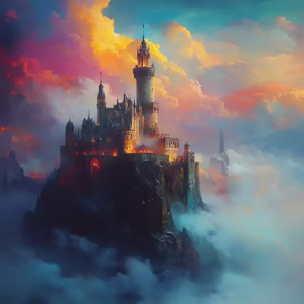 Poster Kasteel op een rots in de wolken f42501