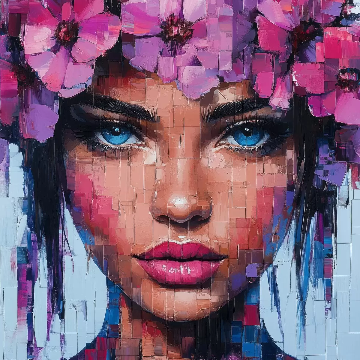 Poster Portret van een meisje gemaakt van mozaïekstukjes Nr f42504