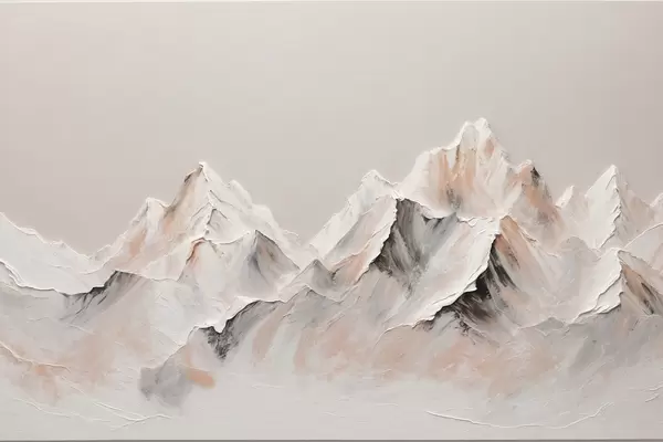 Poster Bergen op witte achtergrond in olieverfschilderijstijl f42515