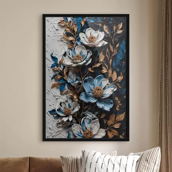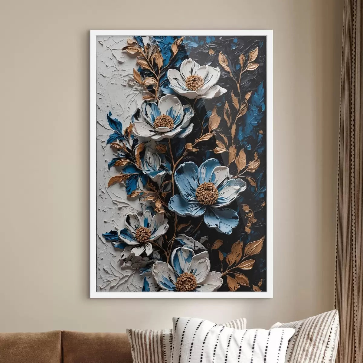 Poster Bloemen en stengels op zwart-witte achtergrond in olieverfschilderijstijl Nr f42532