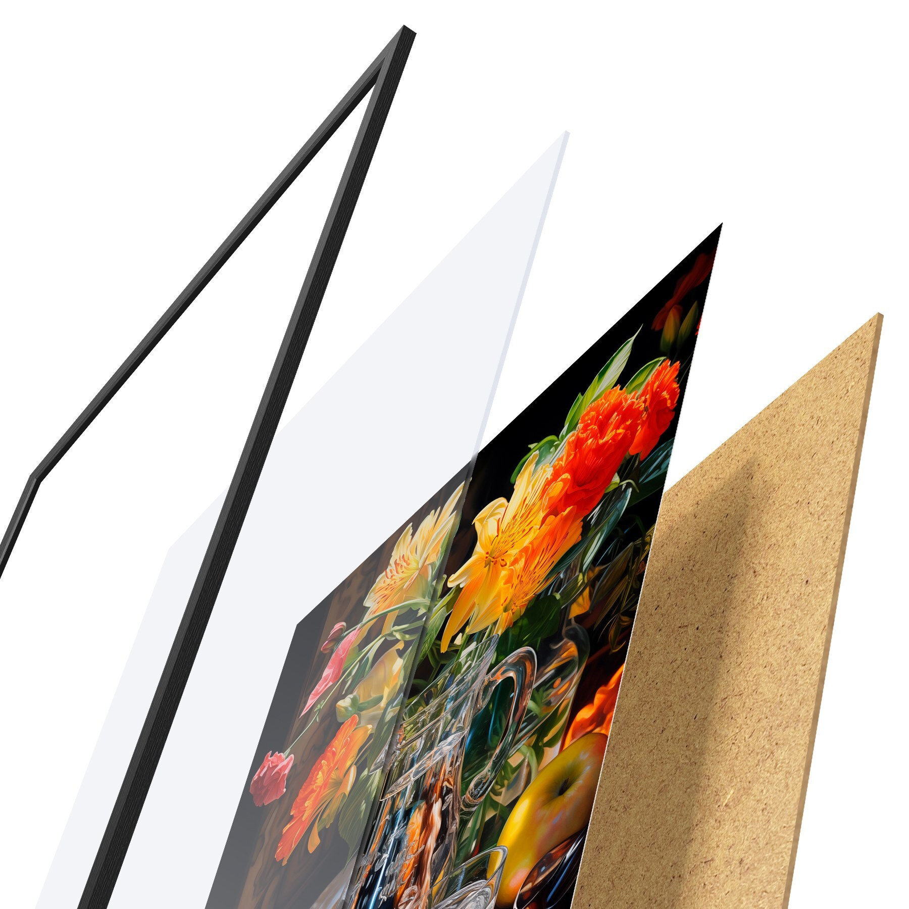 De poster bestaat uit een frame, plexiglas, geprinte afbeelding en spaanplaat achterkant. De poster kan meteen aan de muur worden gehangen dankzij de bevestigingen op de achterkant.