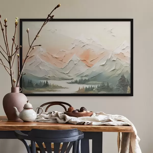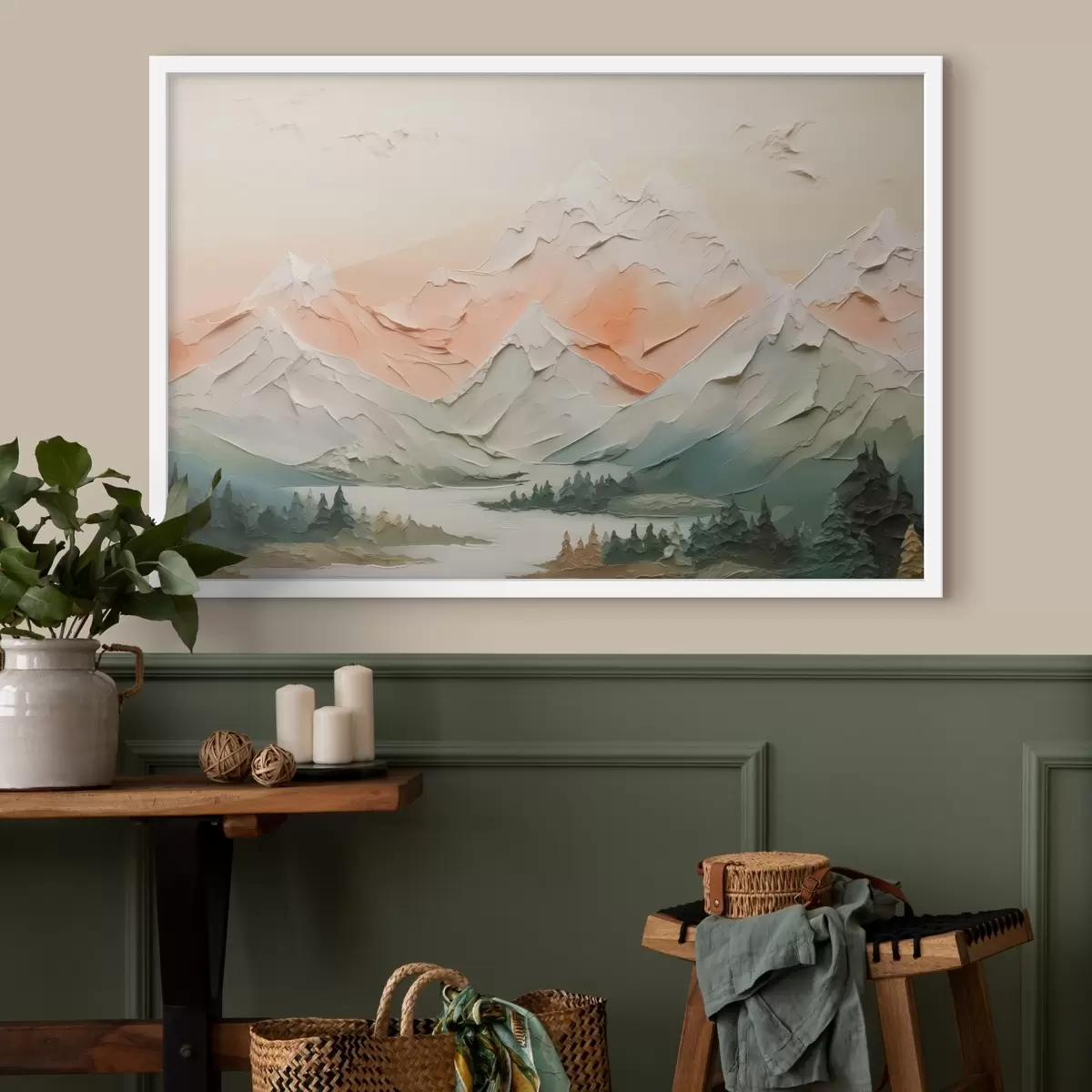 Poster Bergen bij de rivier imitatie van penseelstreken Nr f42589