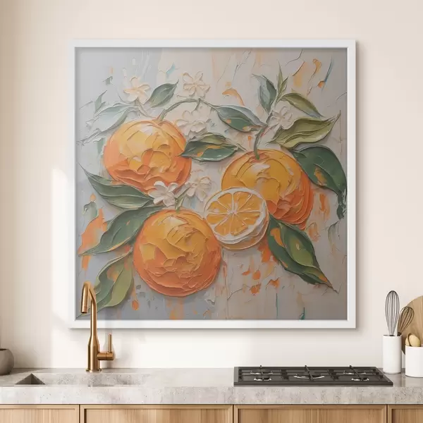 Poster Sinaasappels abstracte imitatie penseelstreken Nr f42591