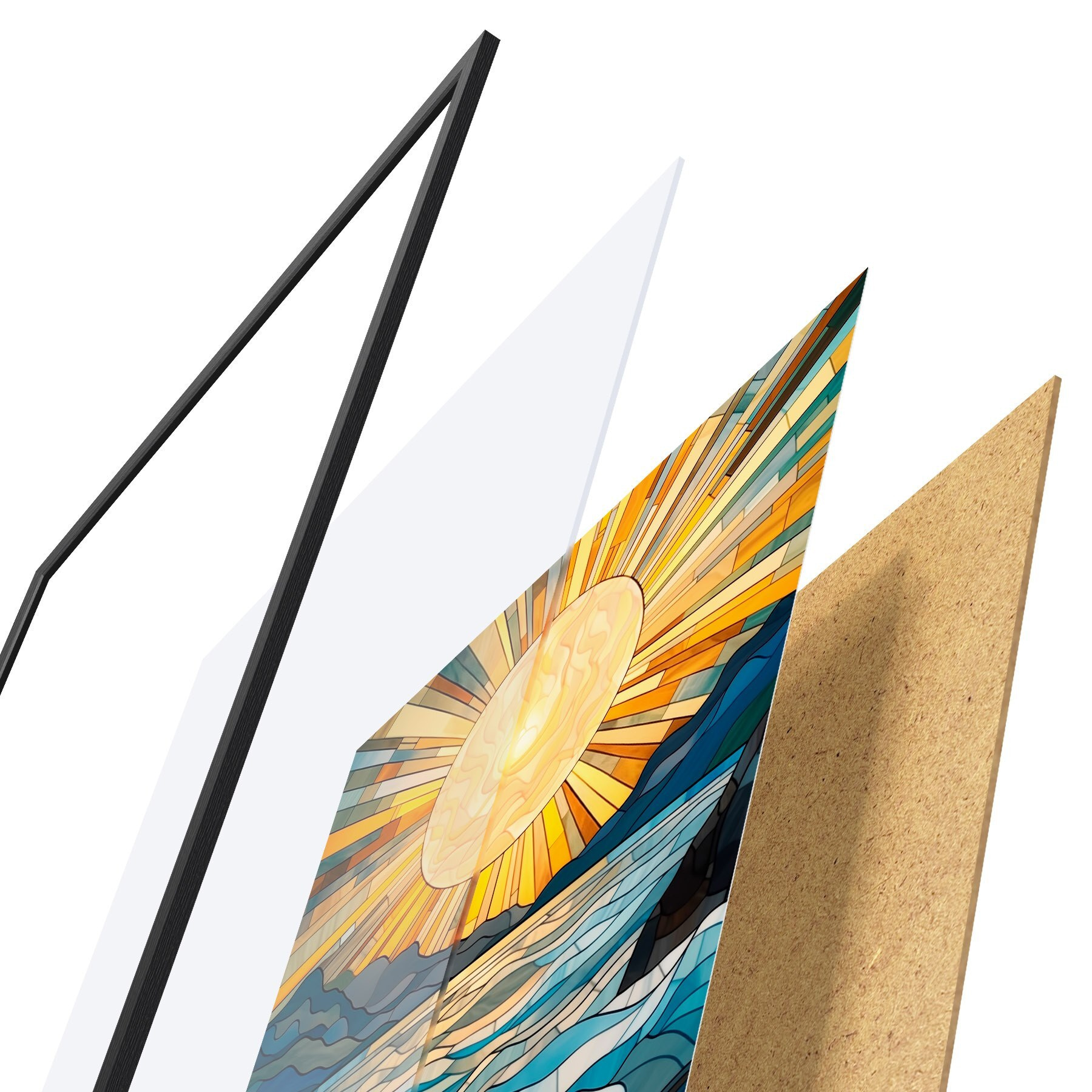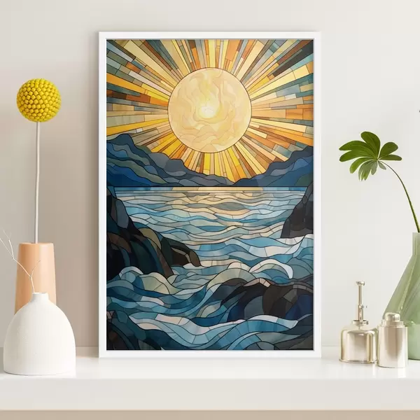Poster Zon en golven in de stijl van glas-in-loodkunst Nr f42654