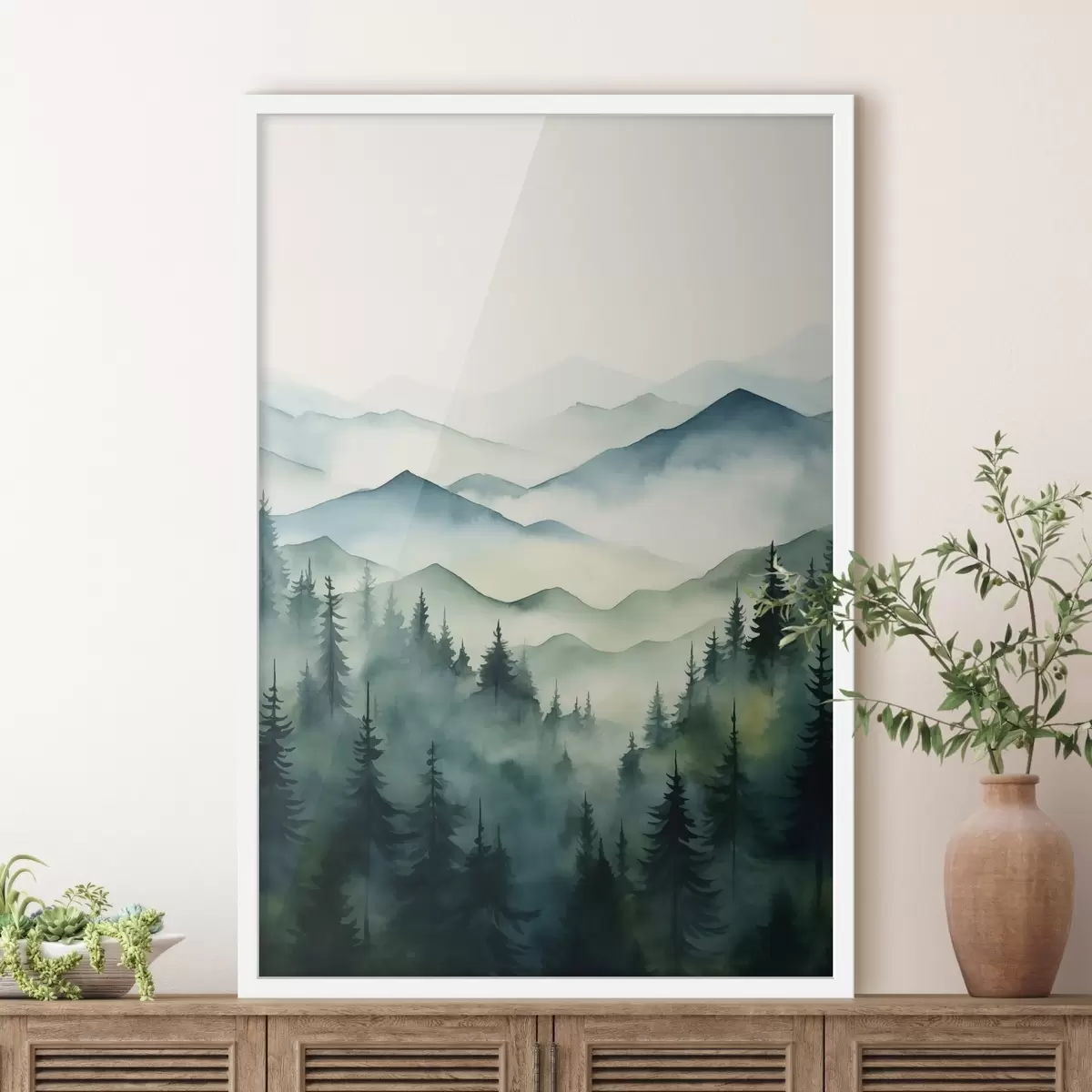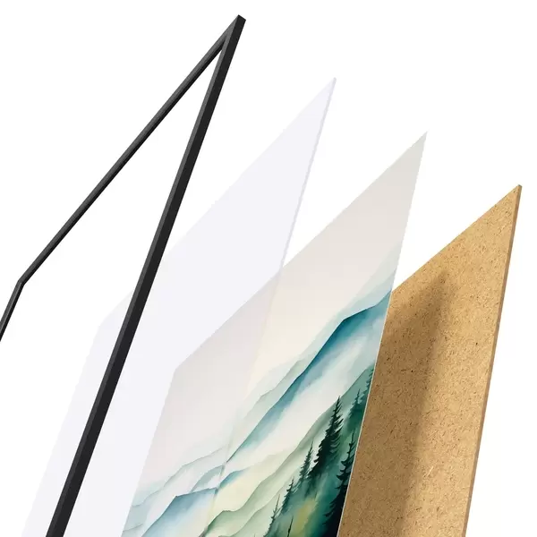 De poster bestaat uit een frame, plexiglas, geprinte afbeelding en spaanplaat achterkant. De poster kan meteen aan de muur worden gehangen dankzij de bevestigingen op de achterkant.