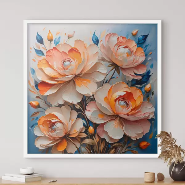 Poster Bloemen op een blauwe achtergrond Nr f42709