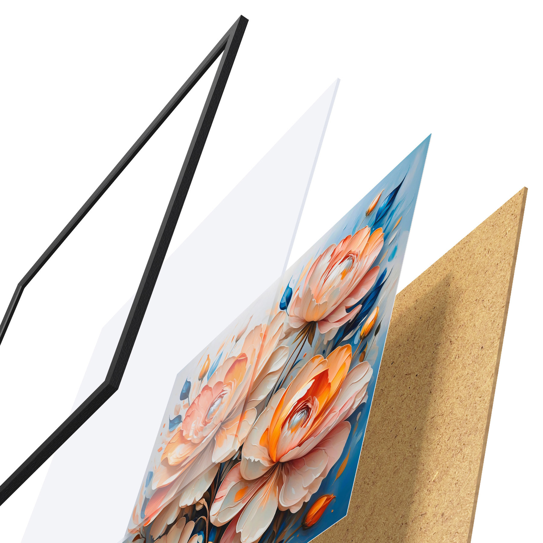 De poster bestaat uit een frame, plexiglas, geprinte afbeelding en spaanplaat achterkant. De poster kan meteen aan de muur worden gehangen dankzij de bevestigingen op de achterkant.