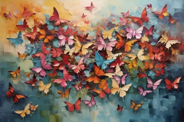 Poster Een levendige reeks vlinders in verschillende kleuren imitatie van olieverfschilderijen Nr f42728