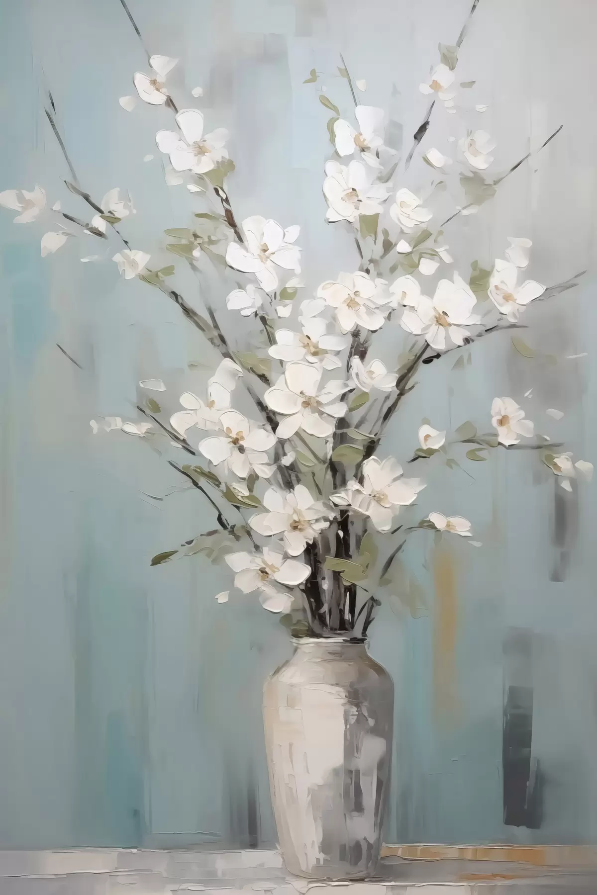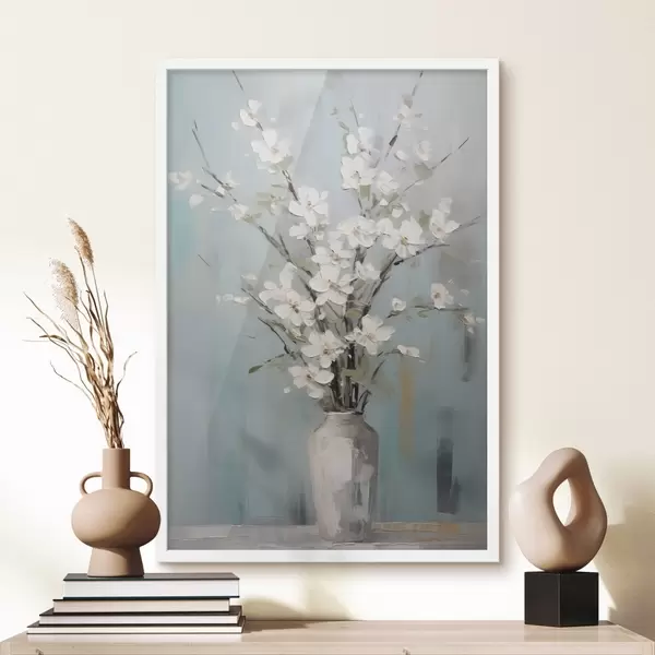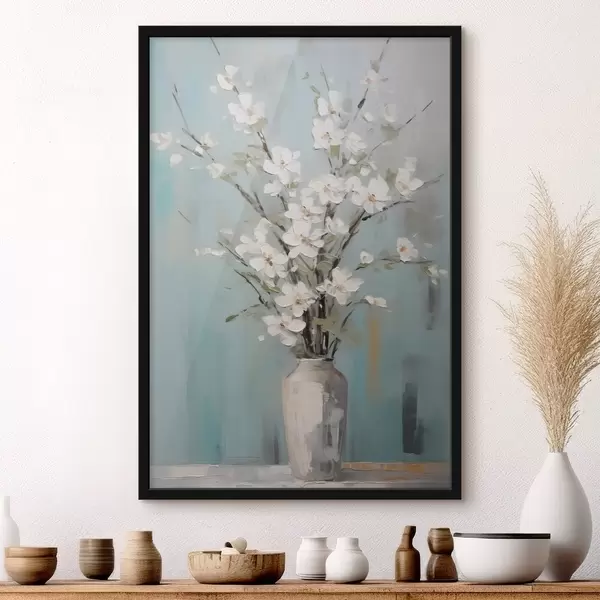 Poster Takken met witte bloemen in een vaas Nr f42746