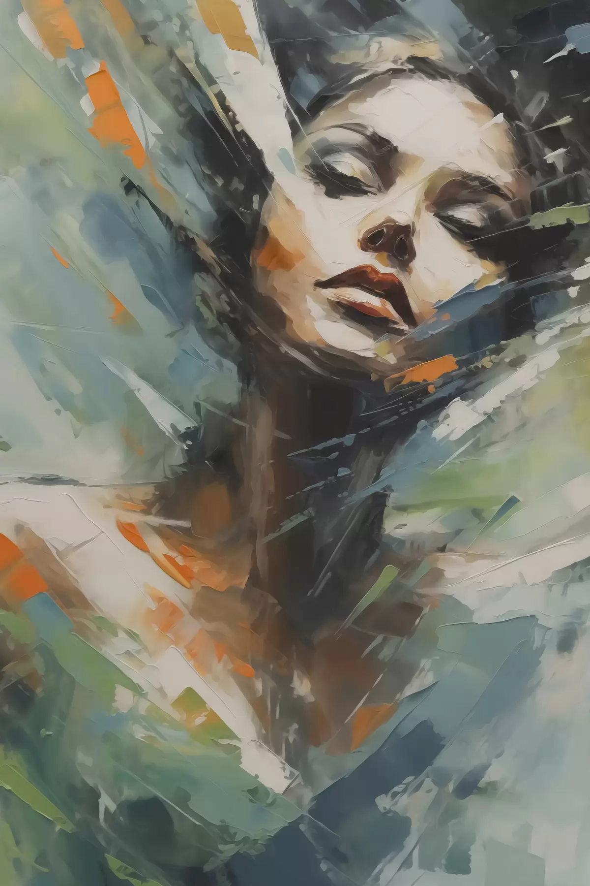 Poster Meisje imitatie van abstract schilderij Nr f42751