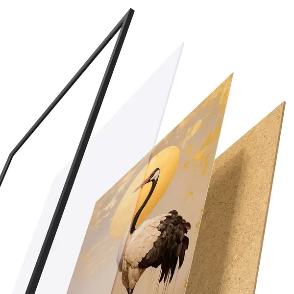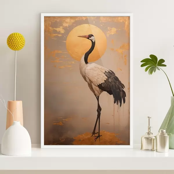 Poster Kraanvogel tegen de achtergrond van de zon in acrylverfstijl Nr f42773