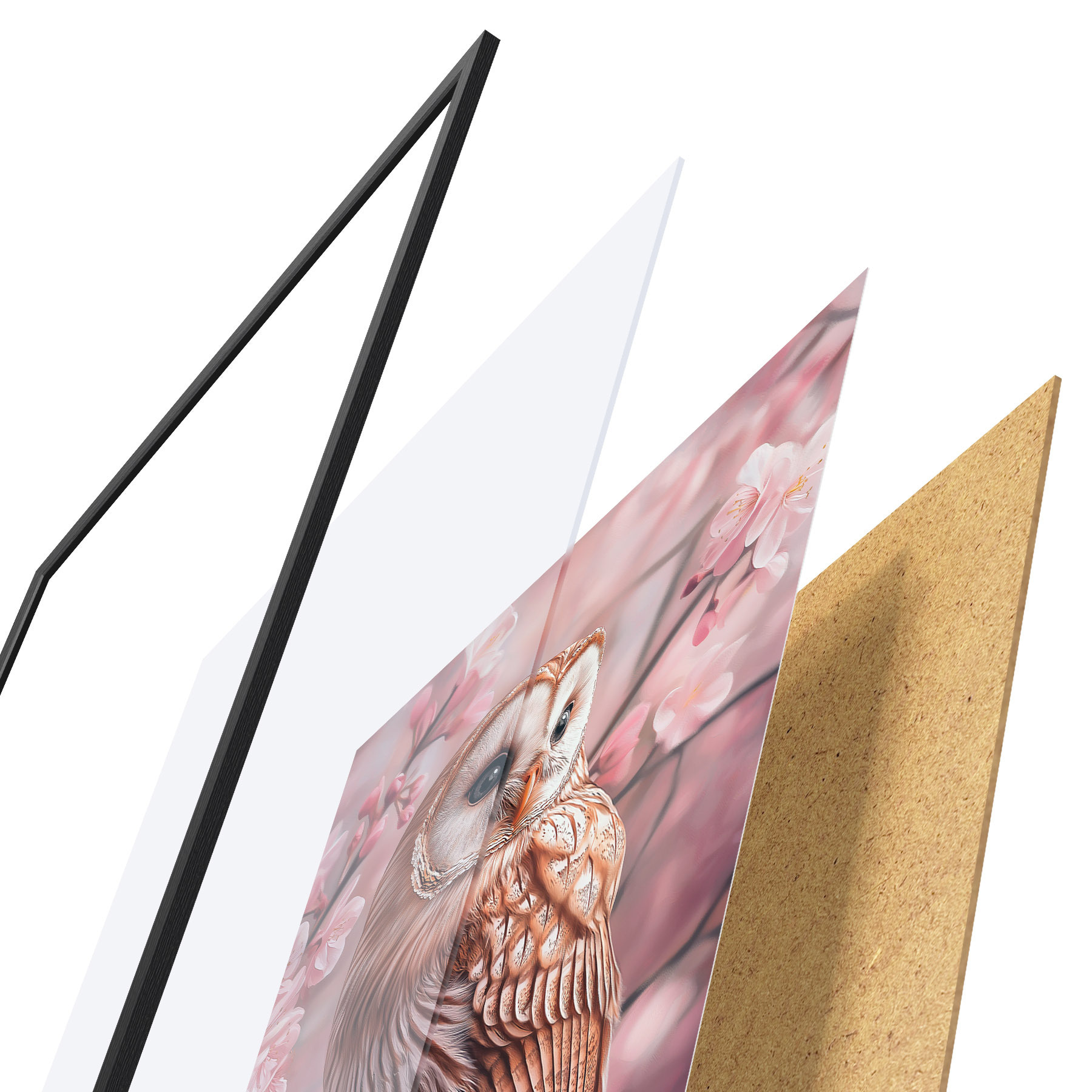 Poster Uil op de kersenboom, roze bloemen, realisme, natuur Nr f42785