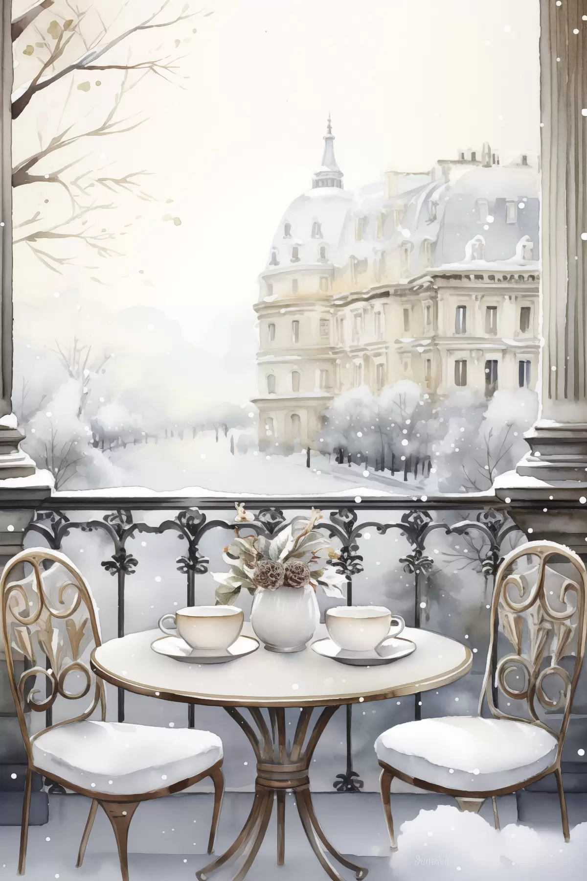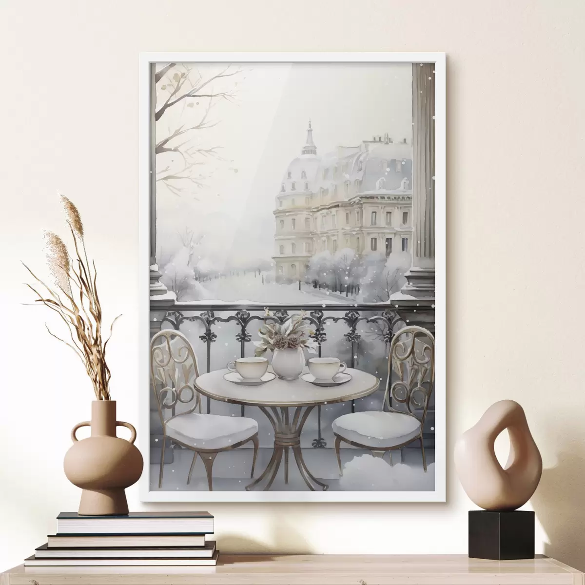 Poster Mooi café, kopjes thee, bohemien stijl, aquarel, winterse esthetiek Nr f42796