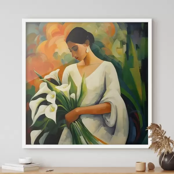 Poster Vrouw met een boeket aronskelken Nr f42818