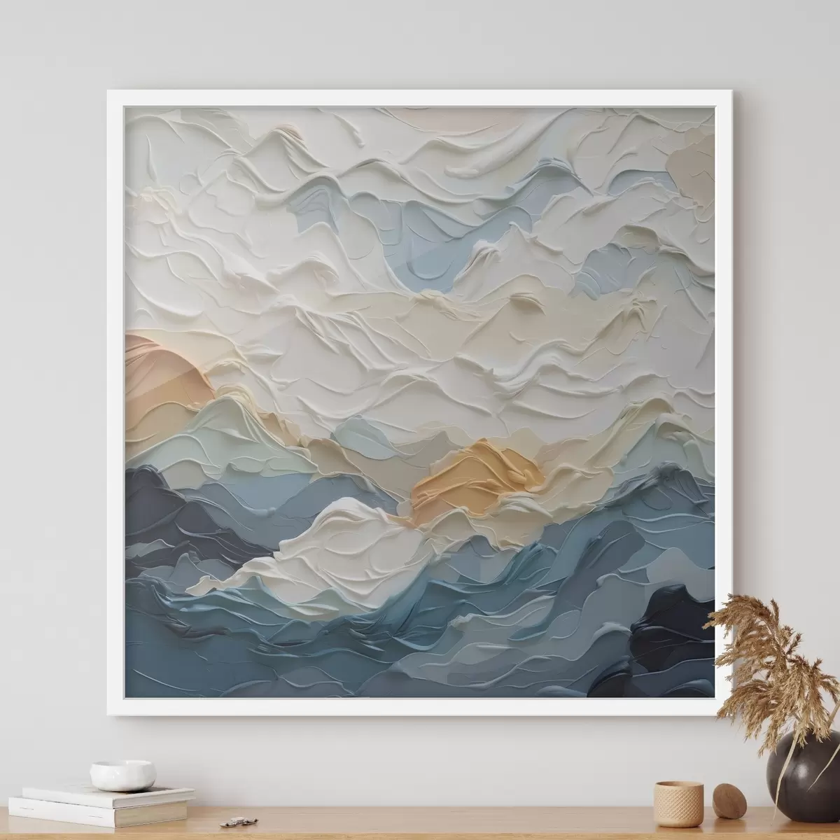 Je kunt het schilderij ophangen aan schroeven. Hiervoor leveren we bevestigingen bij onze foto's, zodat je de foto gemakkelijk kunt ophangen.