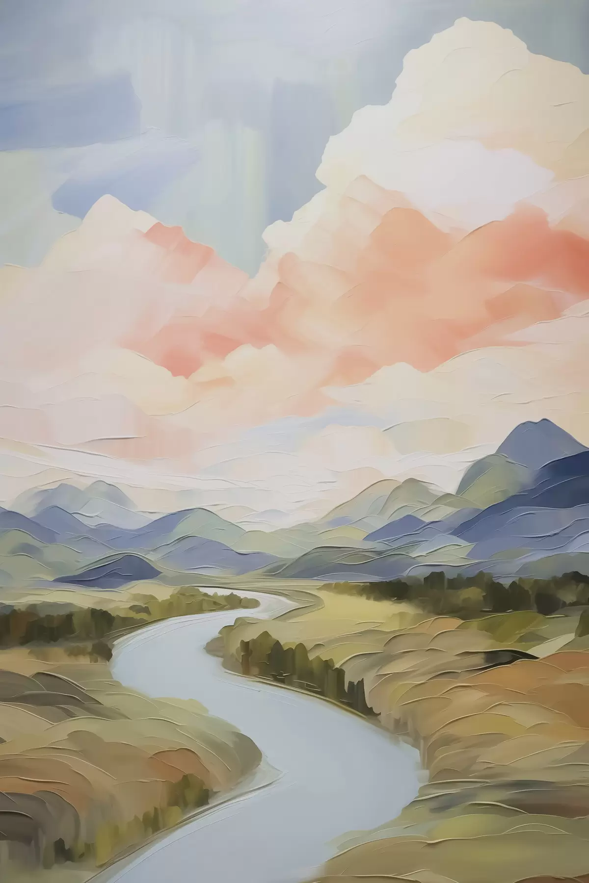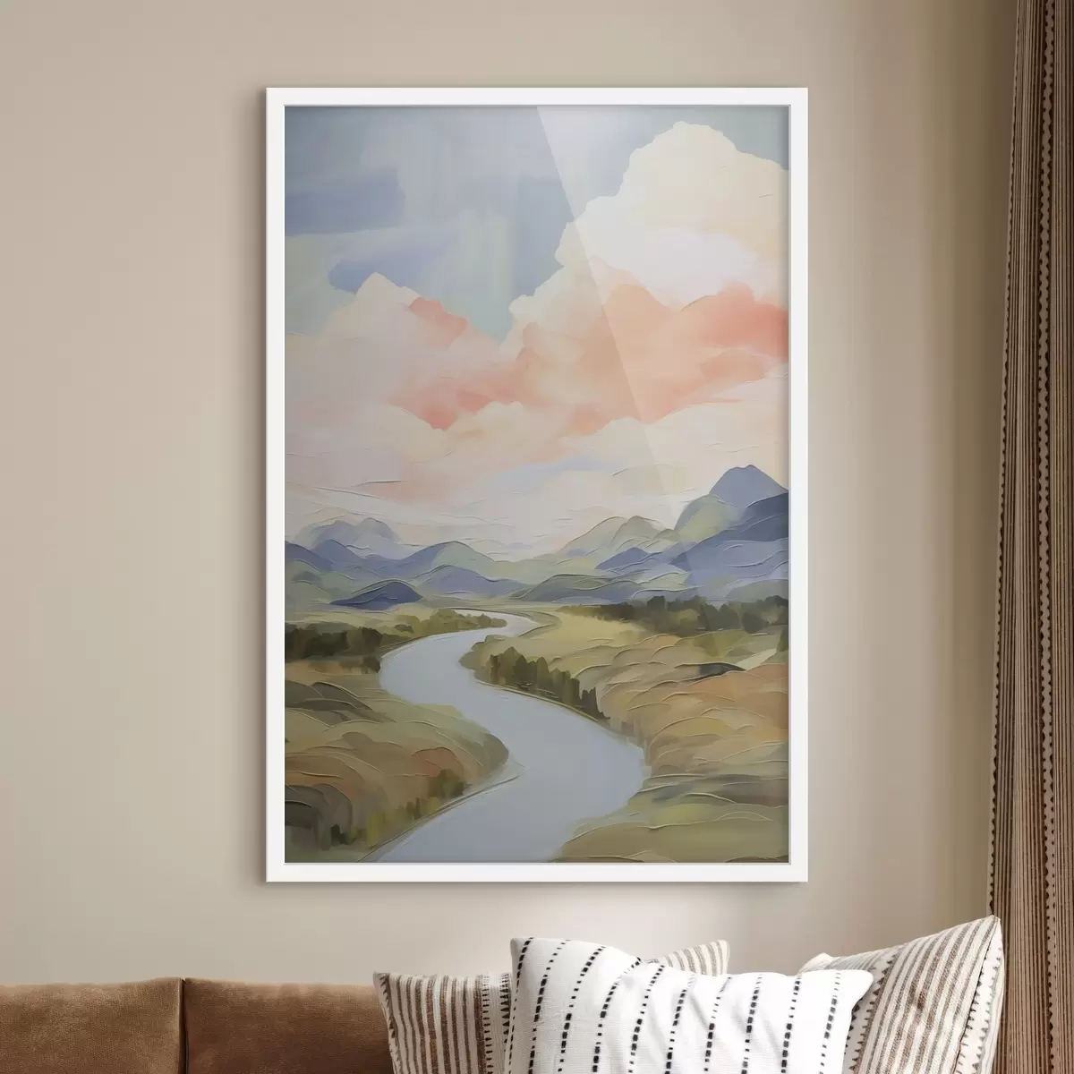 Poster Rivier in het dallandschap imitatie van schilderij Nr f42844