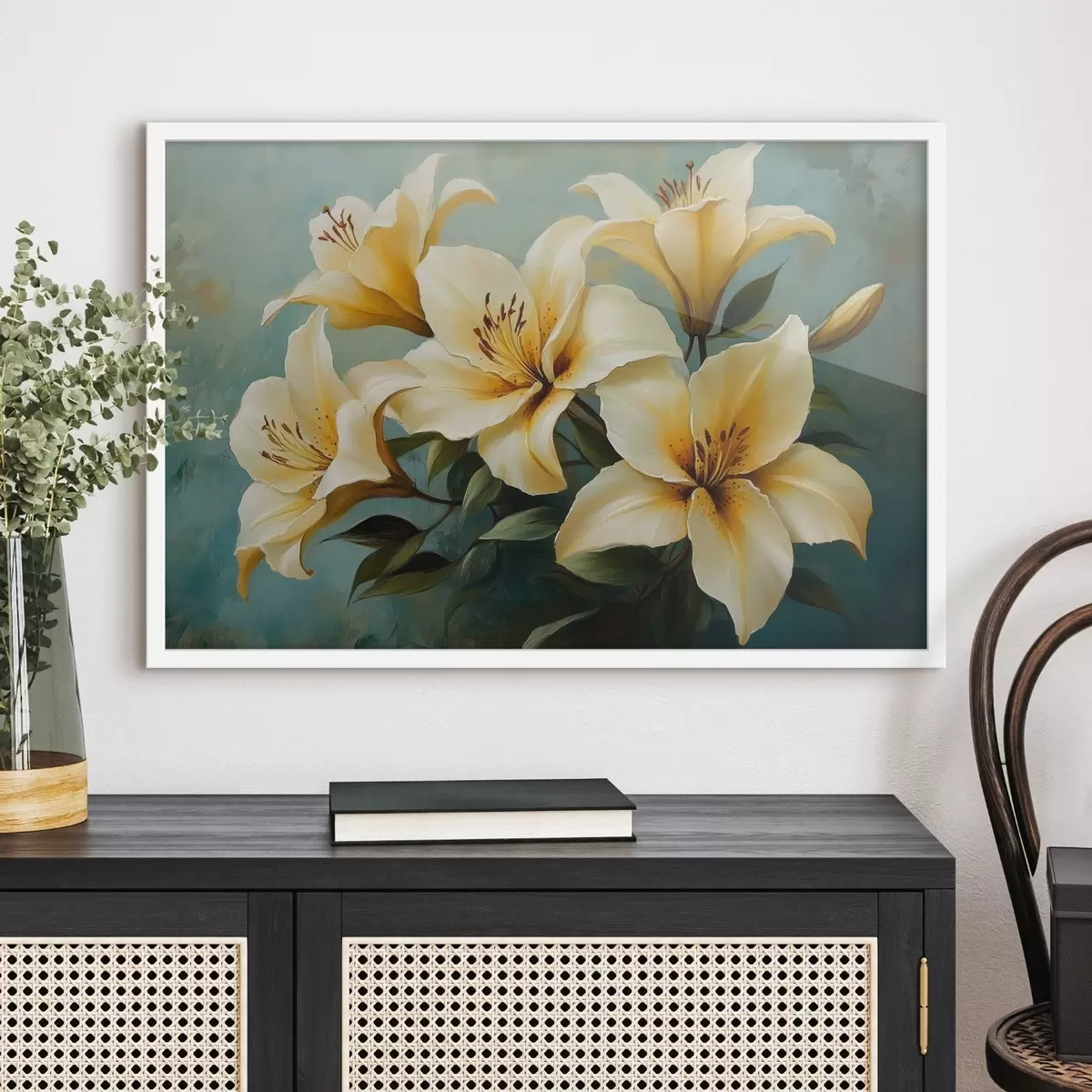 Je kunt het schilderij ophangen aan schroeven. Hiervoor leveren we bevestigingen bij onze foto's, zodat je de foto gemakkelijk kunt ophangen.