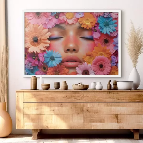 Poster Meisjesgezicht in bloemen f42856