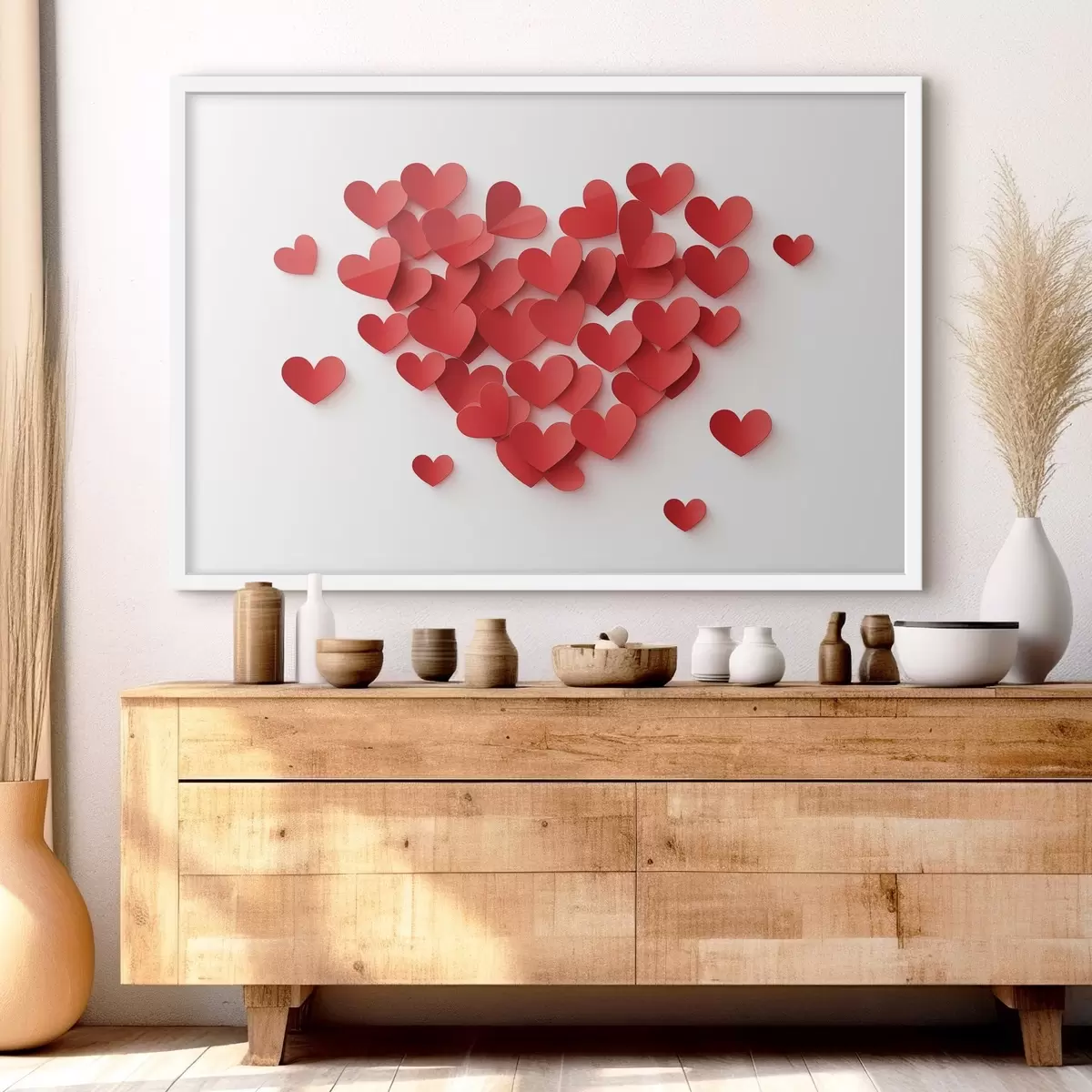Poster Imitatie, volumetrisch papieren rode harten f42870