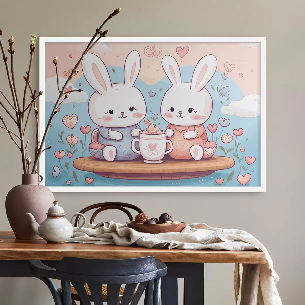 De poster bestaat uit een frame, plexiglas, geprinte afbeelding en spaanplaat achterkant. De poster kan meteen aan de muur worden gehangen dankzij de bevestigingen op de achterkant.
