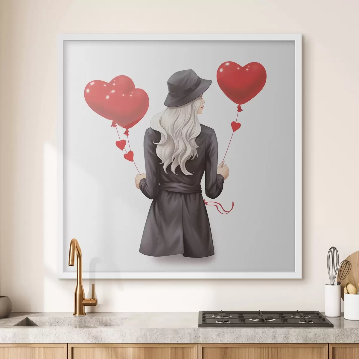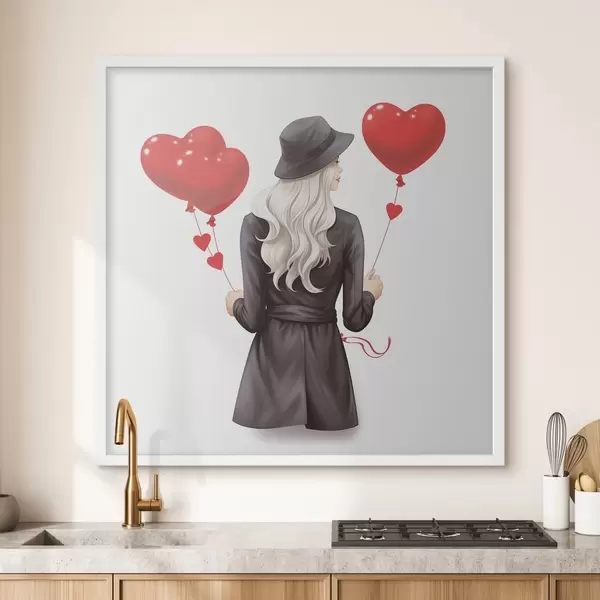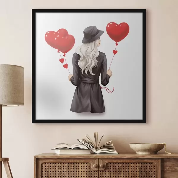 Poster Blondine met ballonnen f42875